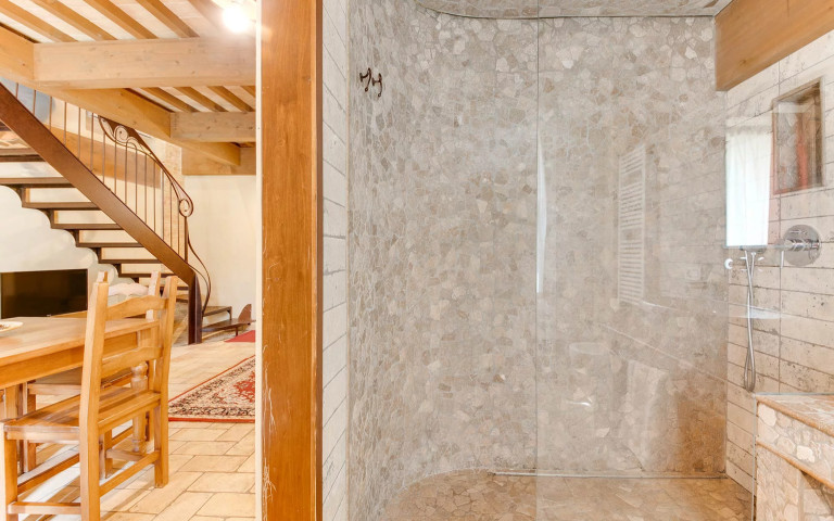 On the ground floor there is a kitchen with a kitchenette and a sink, a queen bed and a bathroom with a shower. The upstairs attic, in addition to the queen bed, has a romantic surprise: a hot tub in the middle of the room.